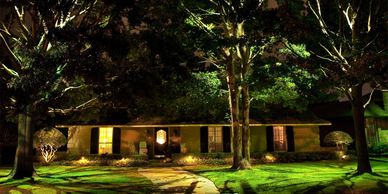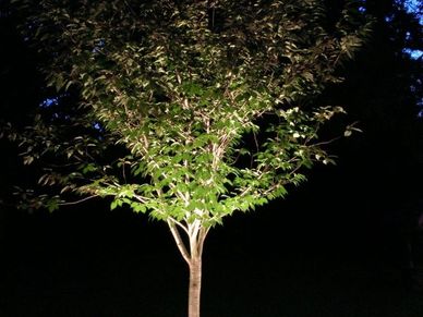Up lighting is an effective way to highlight trees. The bark and foliage of the tree pops against the night backdrop.